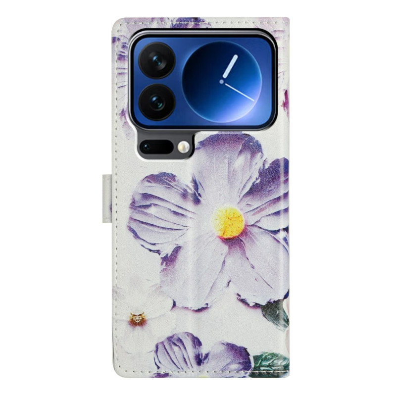 Descubre nuestra funda cartera multifuncional para el Xiaomi 17 Pro. Combinando estilo y practicidad, ofrece protección integral, almacenamiento para tarjetas y notas, un soporte integrado para ver con las manos libres y una colgante de muñeca desmontable para mayor portabilidad. Su elegante diseño con motivo floral morado añade un toque de sofisticación a tu dispositivo.