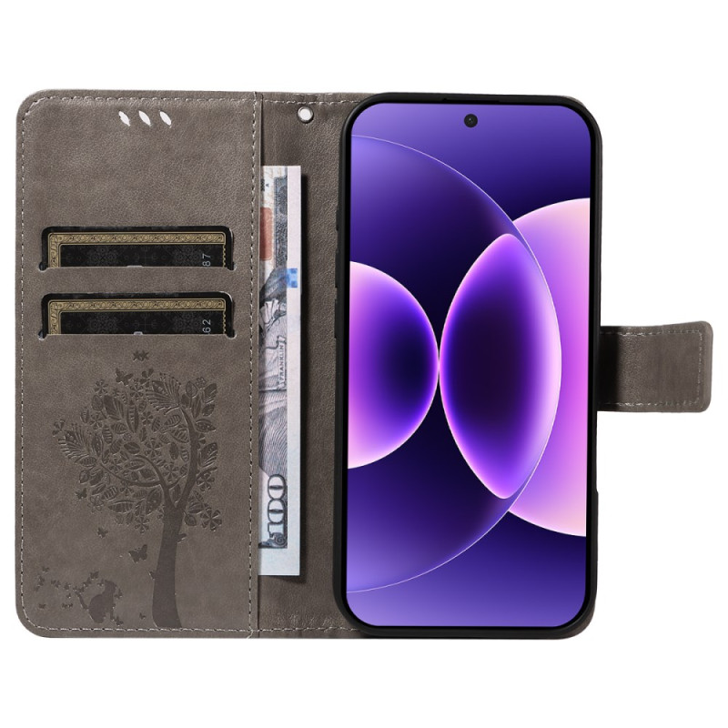 Descubre nuestra elegante funda monedero para el Xiaomi 17 Pro. Fabricada en piel de PU de alta calidad y con un motivo estampado de un gato y un árbol, ofrece una protección resistente y un estilo único. Con funciones prácticas como un soporte integrado, ranuras para tarjetas y una colgante para la muñeca, es el accesorio perfecto para tu smartphone.