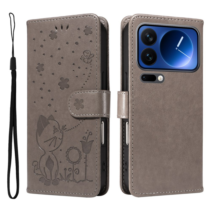 Esta elegante funda tipo cartera para el Xiaomi 17 Pro combina protección y funcionalidad. Fabricada en piel de PU de alta calidad con un motivo impreso de gatos y abejas, cuenta con ranuras para tarjetas, un compartimento para notas, una función de soporte y una práctica colgante para la muñeca. Los precisos recortes garantizan un fácil acceso a todas las funciones del teléfono.
