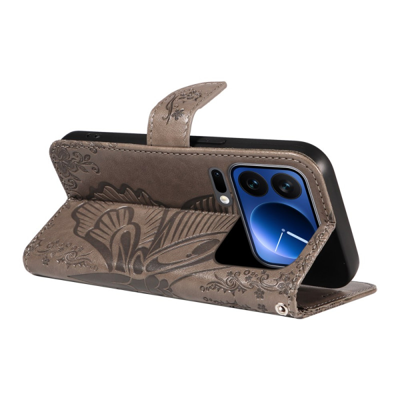 Descubre nuestra elegante funda de piel PU para el Xiaomi 17 Pro. Con su motivo de mariposa impreso, ofrece una protección robusta y un estilo único. Disfruta de funciones prácticas como ranuras para tarjetas, compartimento para cartera y función de soporte para un uso versátil.