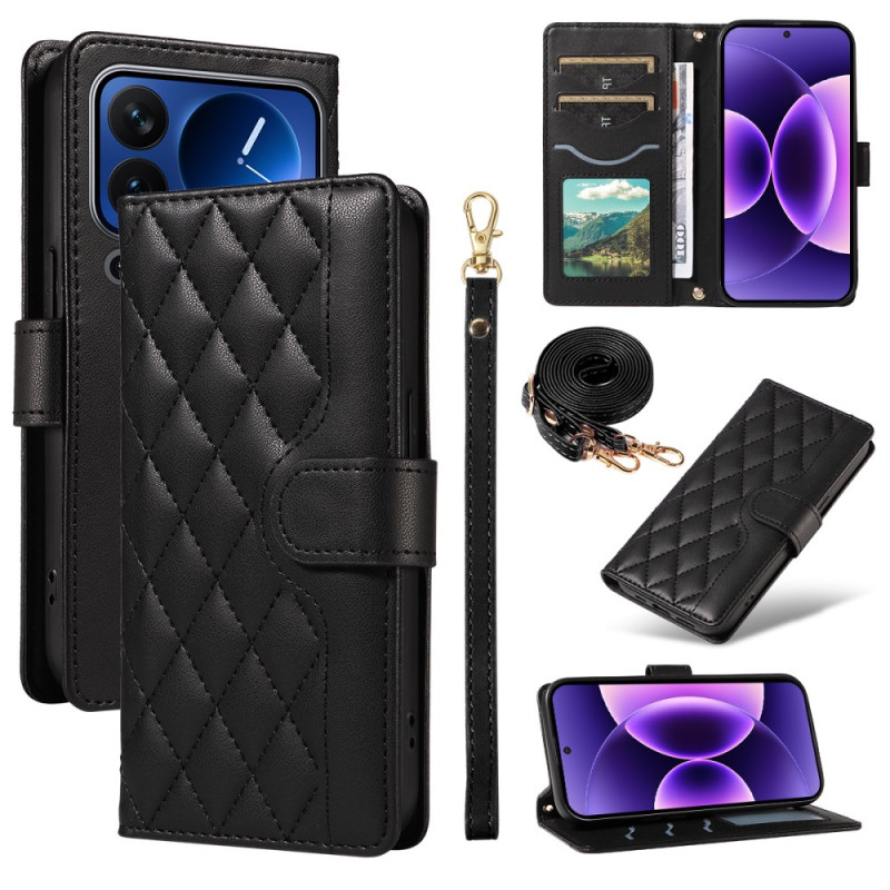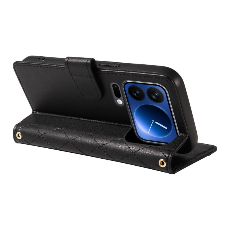 Descubre nuestra elegante funda monedero para el Xiaomi 17 Pro. Fabricada en piel de PU y TPU mate, ofrece una protección completa contra arañazos y golpes. Su moderno diseño romboidal y sus prácticas características la convierten en un accesorio esencial.