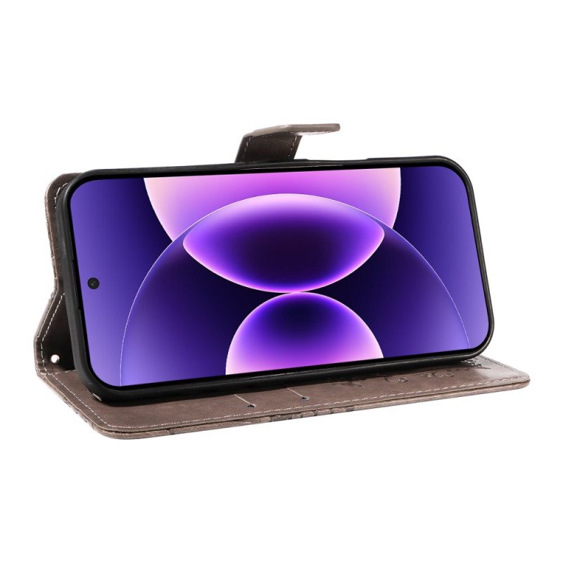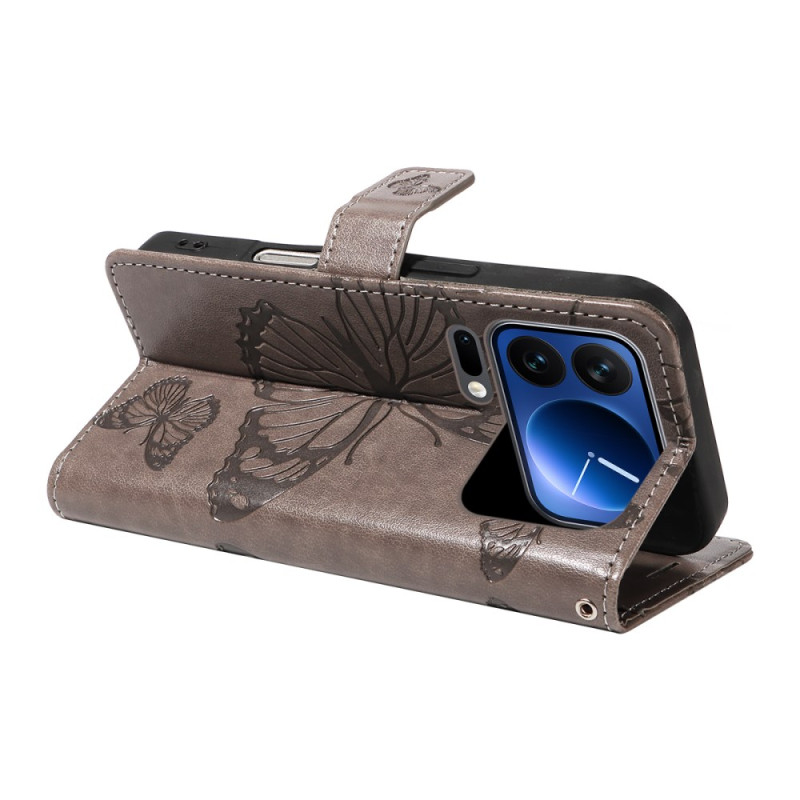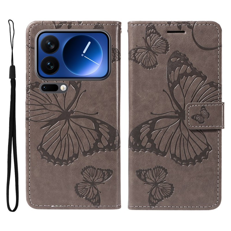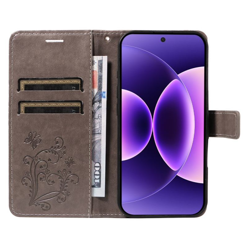 Elegante funda de piel de PU con motivo de mariposa impreso, que ofrece una sólida protección y funciones prácticas. Incluye ranuras para tarjetas, compartimento para billetes, función de soporte y colgante de muñeca para mayor portabilidad.