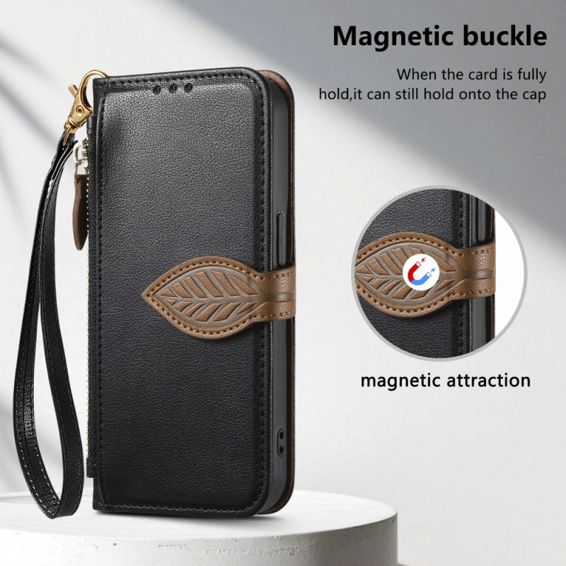 Protégez votre Xiaomi 17 Pro avec élégance grâce à cet étui multifonction. Doté d'un fermoir magnétique décoratif en forme de feuille, de 3 emplacements pour cartes, d'une poche zippée extérieure et d'une dragonne amovible pour un transport facile...