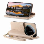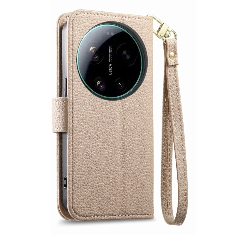 Étui portefeuille élégant pour Xiaomi 17 Ultra 5G en cuir PU premium avec motif cœur. Comprend une fermeture éclair, des compartiments pour cartes et espèces, un support pliable et une dragonne. Protection complète avec fermeture magnétique sécurisée.