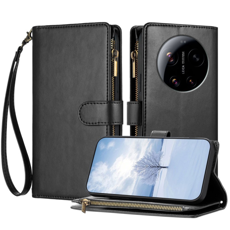 Découvrez cet étui portefeuille multifonction pour Xiaomi 17 Ultra 5G. Conçu en cuir PU premium, il combine protection antichoc, support mains libres et rangement intelligent avec 8 emplacements cartes, poche zippée et dragonne détachable.