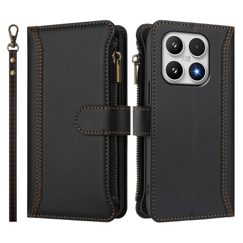 Versátil funda de piel para Xiaomi 17 con 9 ranuras para tarjetas, cierre de cremallera, función de soporte y colgante