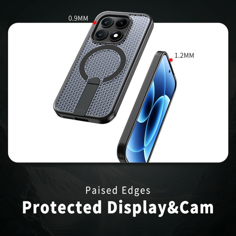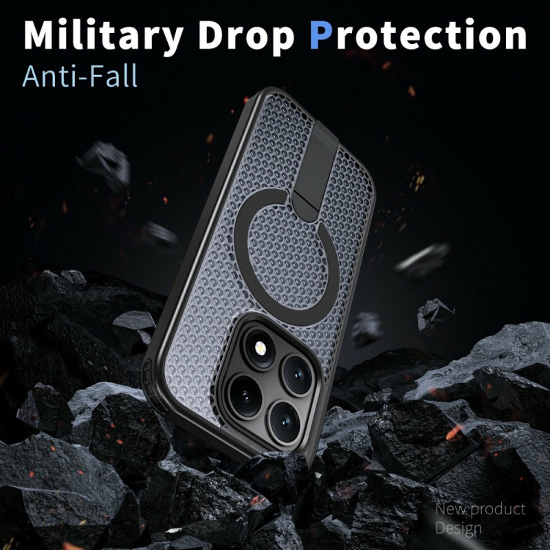 Protege tu Xiaomi 17 con estilo gracias a esta funda magnética con una moderna textura de rejilla y un pie de apoyo integrado. Compatible con MagSafe, ofrece mayor protección contra caídas y mejora la disipación del calor en un 50%.
