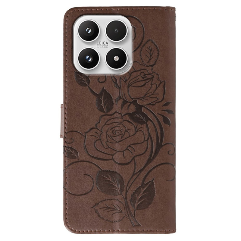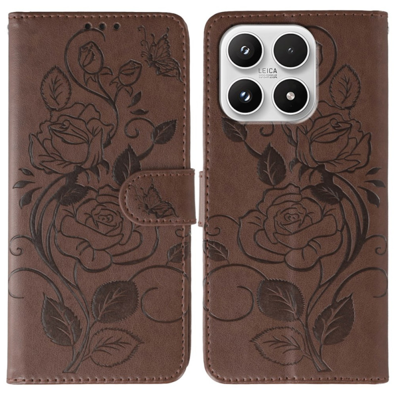 Elegante funda cartera para Xiaomi 17 con motivo rosa y mariposa impresa. Combinación de piel sintética de primera calidad y funda