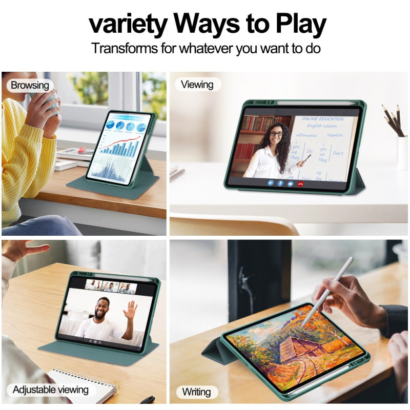 Protege tu tablet Xiaomi con esta funda giratoria de 360° en piel de PU y acrílico. Con un soporte ajustable, un soporte para bolígrafo y protección reforzada en las cuatro esquinas, ofrece una protección completa contra golpes y polvo. Compatible con un teclado para un uso versátil.