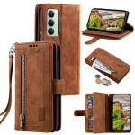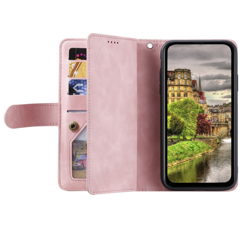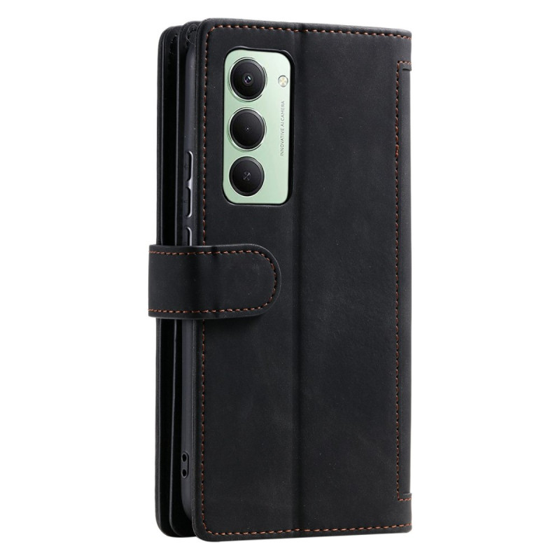 Cartera de piel de PU para Xiaomi Redmi 15 con 9 ranuras para tarjetas, cierre de cremallera y colgante de mano. Función de soporte integrada para ver con las manos libres. Protección completa con cierre magnético e interior de TPU. Perfecta para guardar tarjetas, monedas y billetes de forma segura.