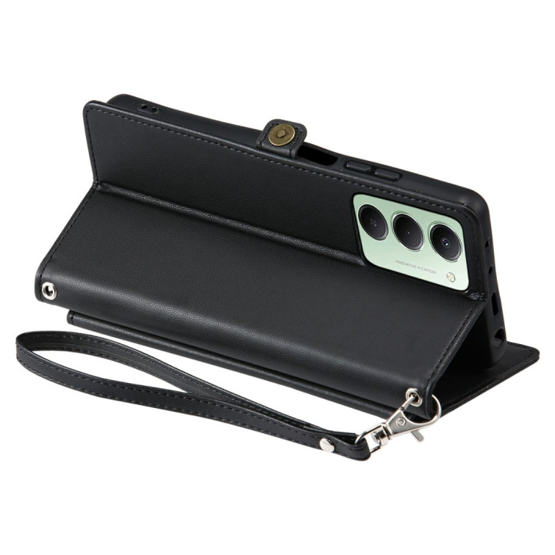 Funda de piel de primera calidad para Xiaomi Redmi 15 con funcionalidad de cartera y soporte integrado. Ofrece protección total, ranuras para tarjetas y efectivo y una práctica colgante de mano. Ideal para un uso diario versátil.