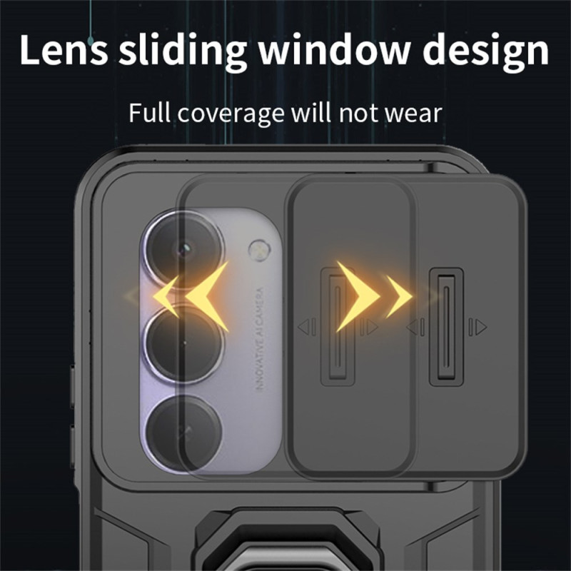 Descubre nuestra robusta funda protectora para el Xiaomi Redmi 15 4G. Con un práctico soporte giratorio y un protector de lente móvil, esta funda combina durabilidad y funcionalidad. Fabricada con PC y TPU de alta calidad, ofrece una excelente protección contra golpes y arañazos.
