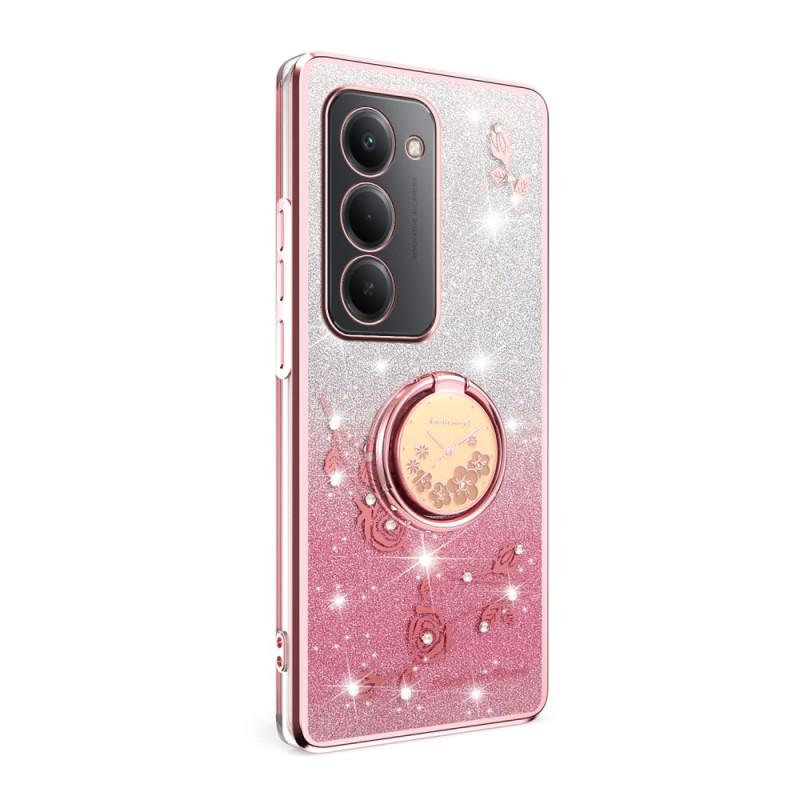 cuenta con decoración floral atemporal y diamantes de imitación con un acabado de brillo degradado, añadiendo un toque de elegancia a su dispositivo.