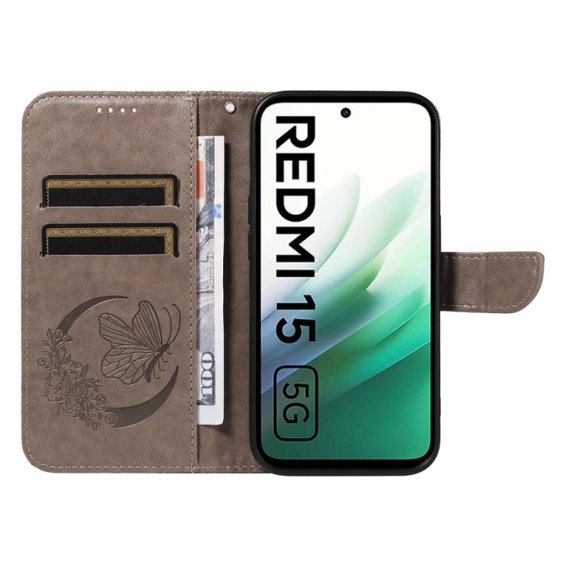 Funda de piel PU de alta calidad con estampado de mariposas para Xiaomi Redmi 15 4G. Ofrece una protección resistente y elegante con funciones prácticas como ranuras para tarjetas, un compartimento para la cartera y una función de soporte. Perfecta para combinar estilo y funcionalidad.