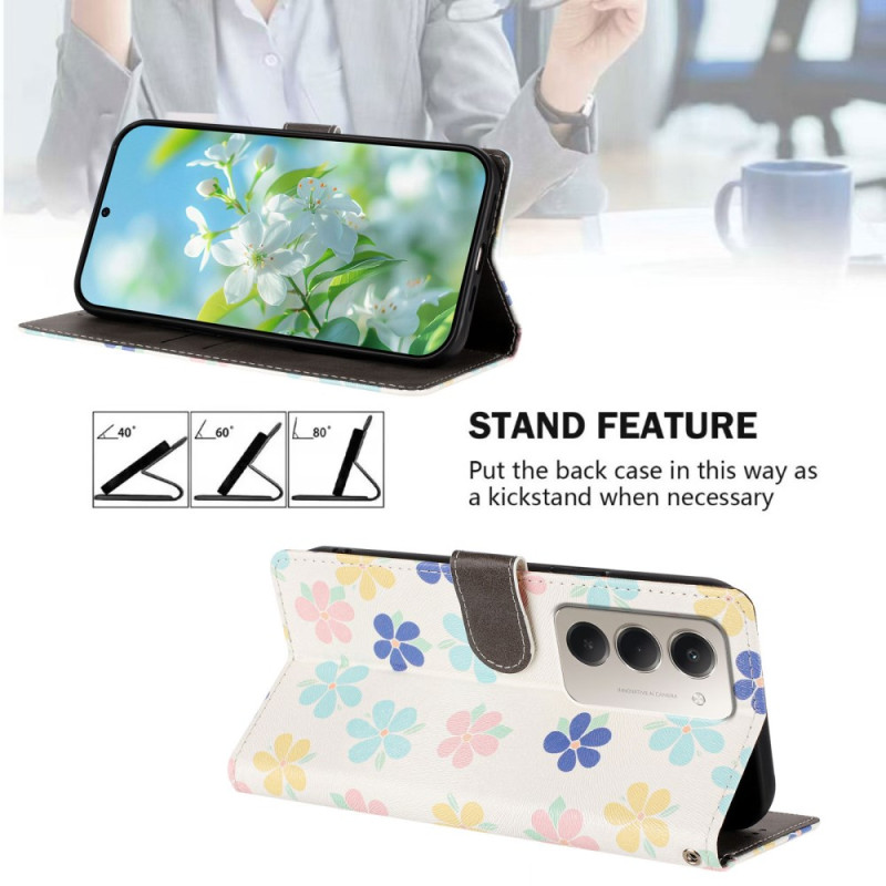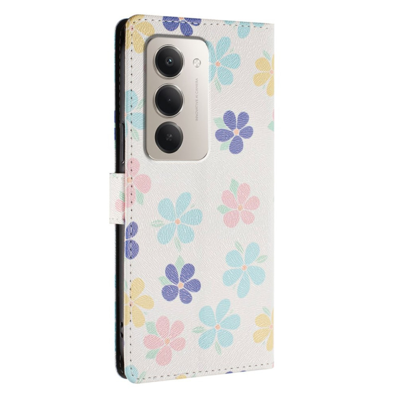 Protege tu Xiaomi Redmi 15 5G / 4G con estilo con esta funda tipo cartera de piel de PU. Con un colorido estampado floral, ofrece una protección duradera contra caídas y arañazos. Con características prácticas como ranuras para tarjetas, un bolsillo para billetes y una colgante de muñeca desmontable, esta funda combina diseño y practicidad,