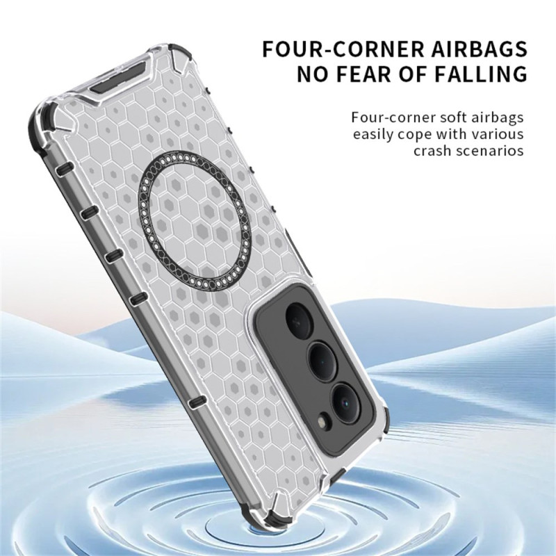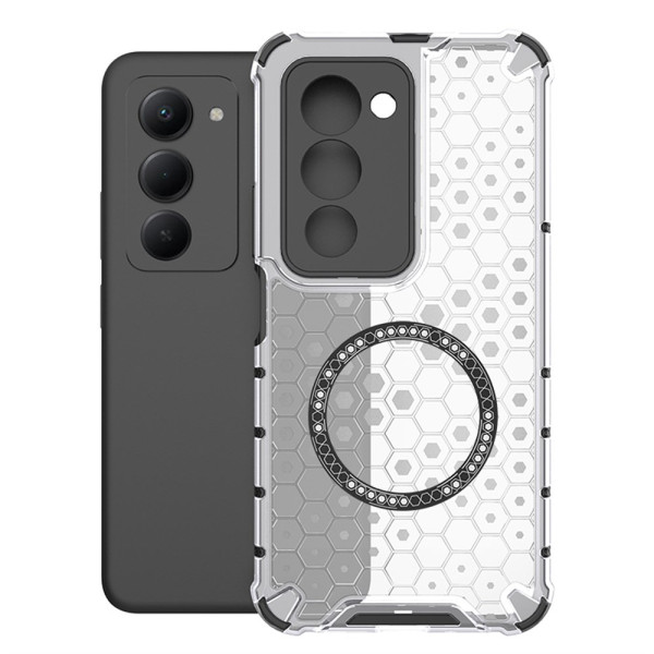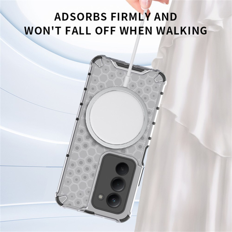 Protege tu smartphone con estilo gracias a esta funda híbrida con un refinado diseño de nido de abeja. El diseño TPU + PC ofrece protección reforzada en las esquinas, compatibilidad MagSafe integrada y una resistencia óptima a golpes y arañazos.