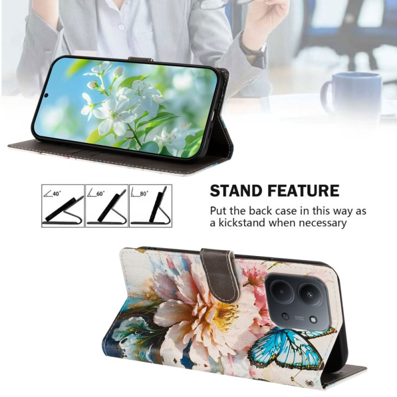 Descubre nuestra funda cartera de cuero PU para Xiaomi Redmi 15C 5G / 4G, que combina estilo y funcionalidad. Con su diseño estampado de mariposas/flores, sus ranuras de almacenamiento y su función de soporte, ofrece una protección completa a la vez que añade un toque de elegancia a tu teléfono. Disfruta de un práctico uso diario gracias a su colgante de mano desmontable y su cierre magnético.