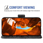 Elegante cartera con artístico motivo de tinta china. Dispone de 3 ranuras para tarjetas, 1 bolsillo para billetes y un tarjetero giratorio externo. Doble cierre magnético, función manos libres y práctica colgante de mano.