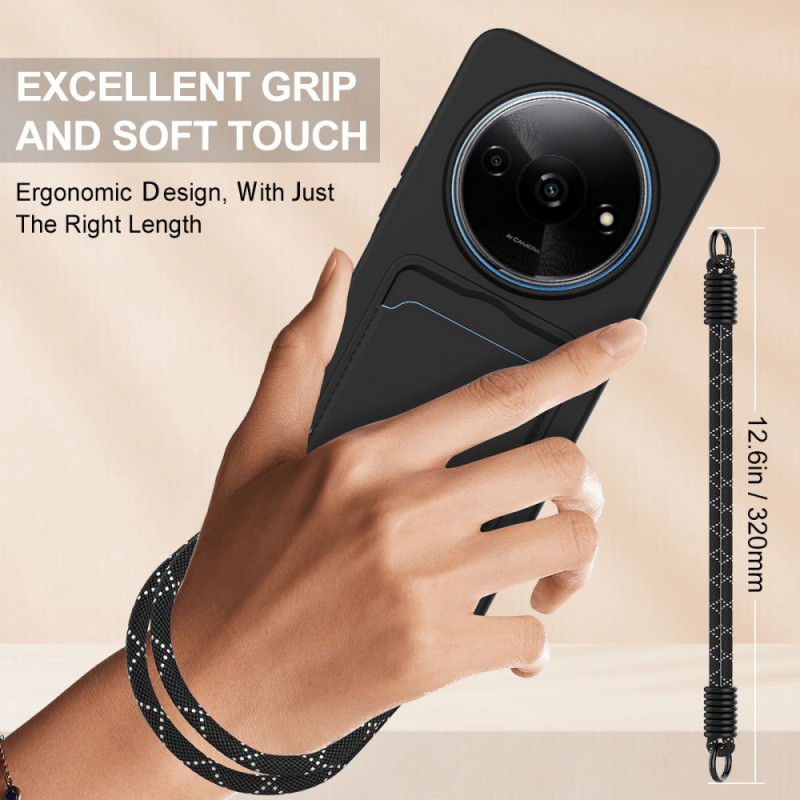 Protege tu Xiaomi Redmi A3 / A3X / Poco C61 con estilo gracias a esta funda de silicona líquida ultrasuave. Con un tarjetero integrado y una colgante de mano extraíble, combina practicidad con una protección óptima para tu dispositivo en el día a día.