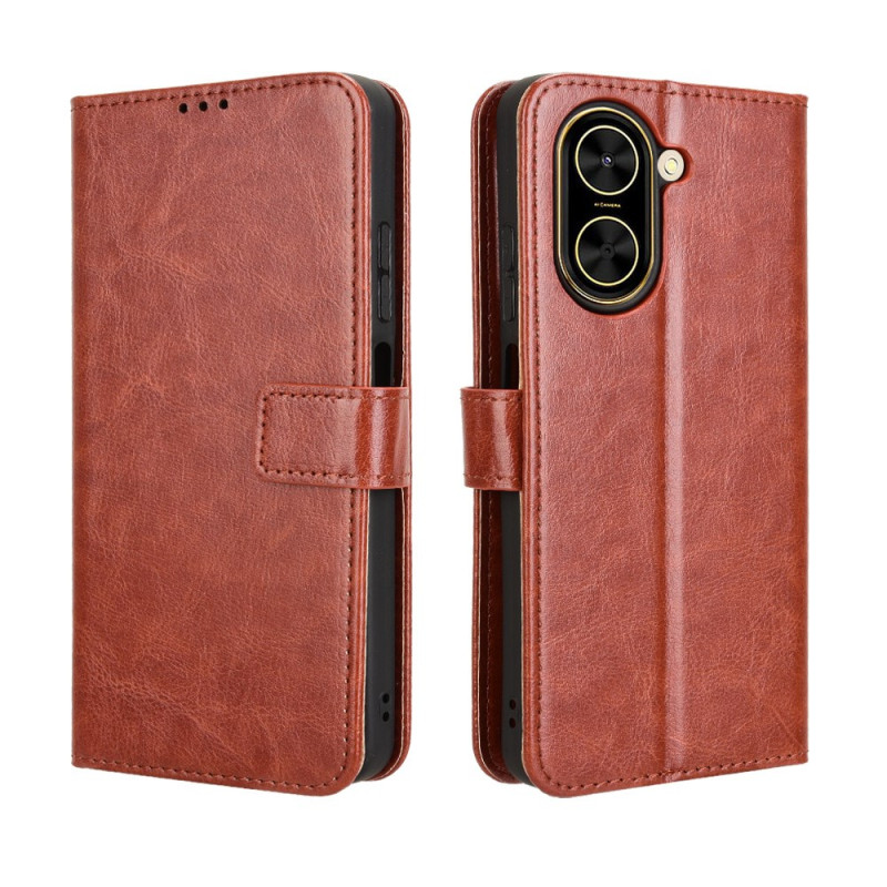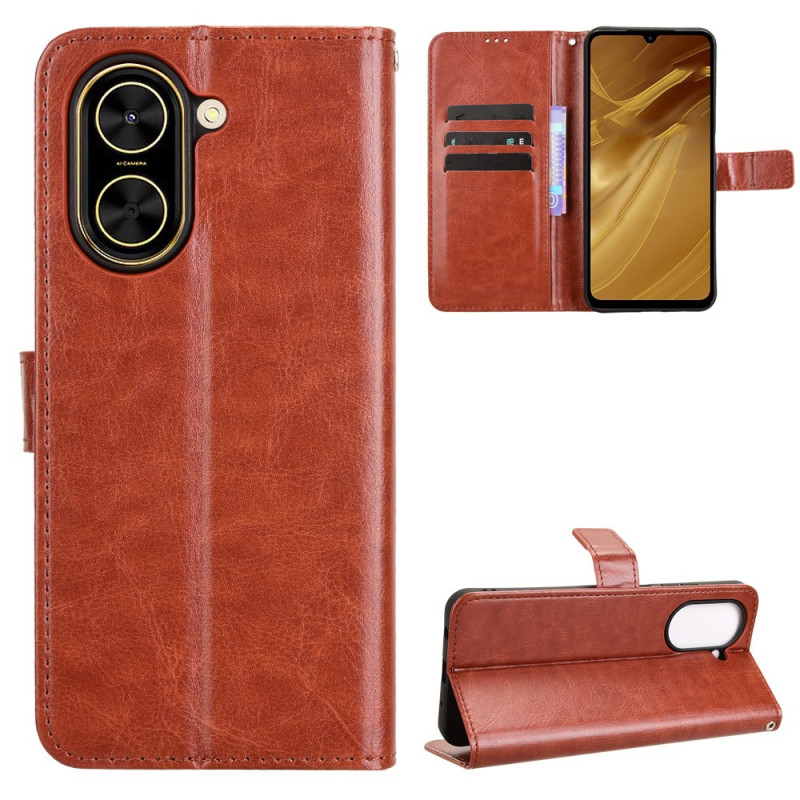 Descubre nuestra funda cartera de piel de PU para el Xiaomi Redmi A5. Con una elegante textura de grano de caballo, ofrece una protección completa con características prácticas como ranuras para tarjetas, un compartimento para notas y una colgante