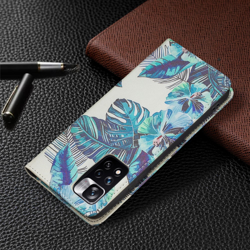 Protege tu Xiaomi Redmi Note 11 Pro Plus 5G con esta funda abatible decorada con hojas de colores.