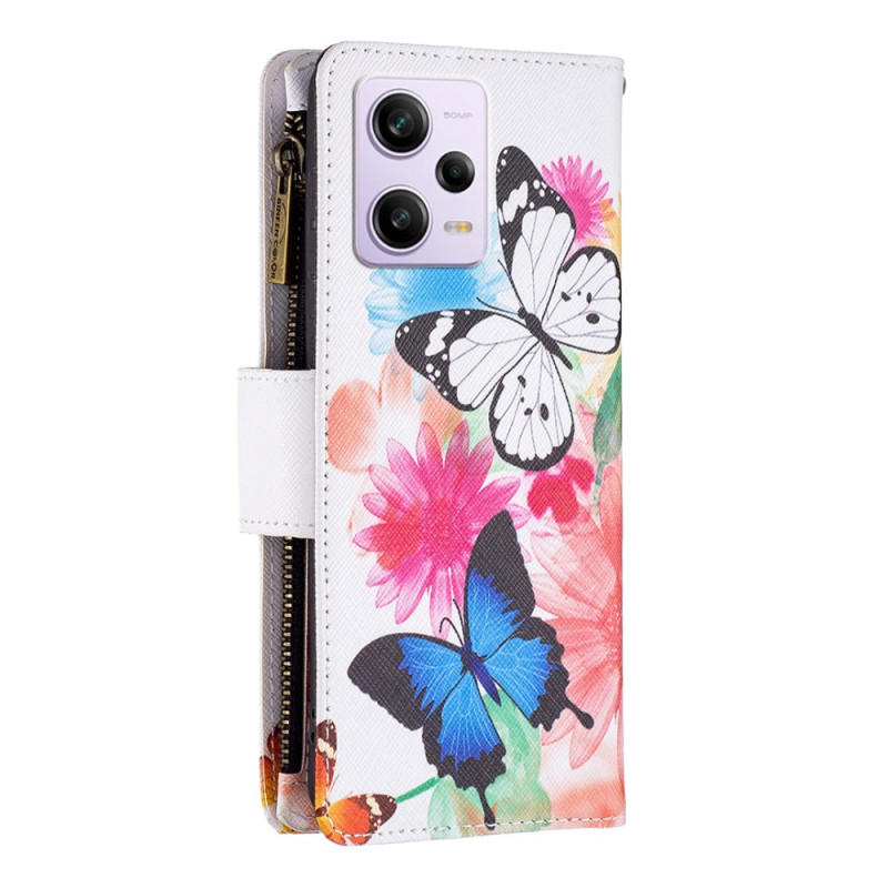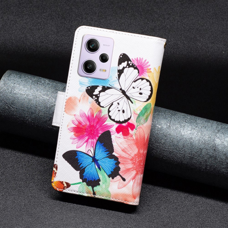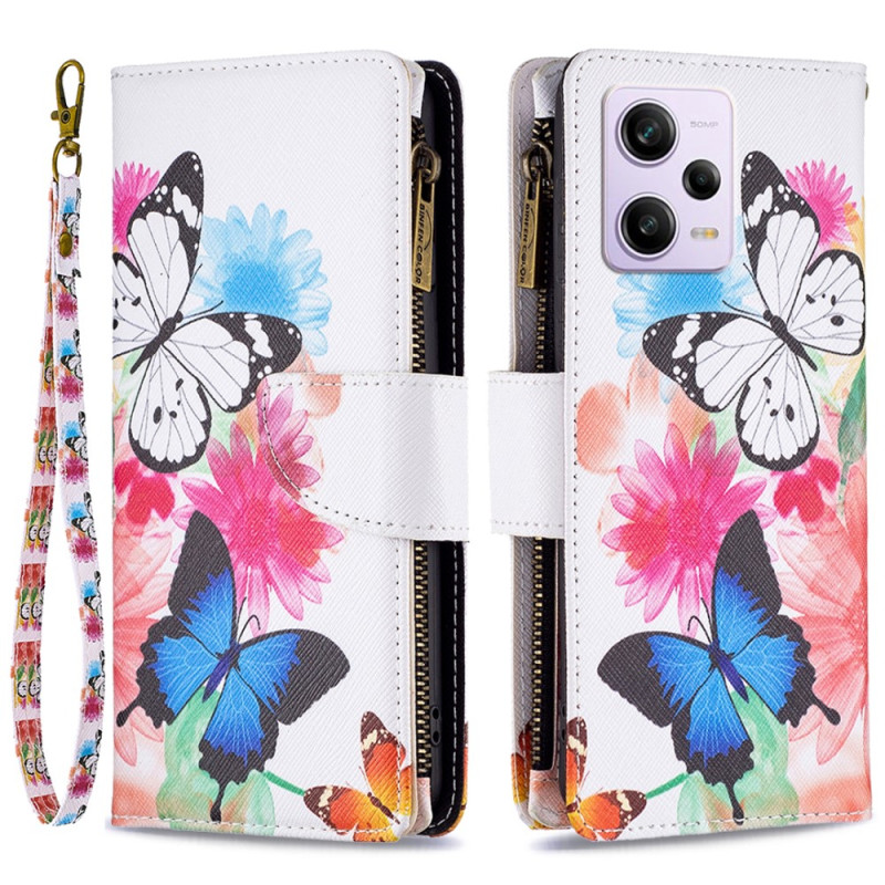 Funda La con cartera de mariposa asegura y ofrece opciones optimizadas para el Xiaomi Redmi Note 12 Pro 5G/Poco X5 Pro 5G.