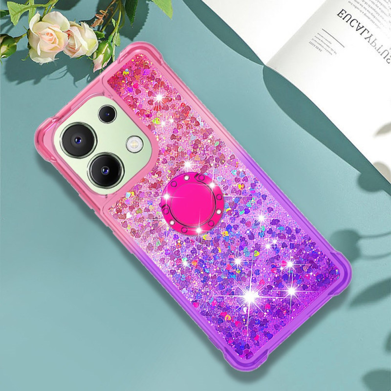Esta funda combina funcionalidad y estilo con su diseño brillante y su soporte integrado.