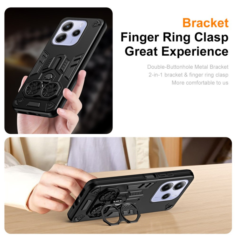 Descubre nuestra funda resistente para el Xiaomi Redmi Note 14 5G. Fabricada en TPU y PC con soporte de anillo metálico, ofrece una protección completa contra golpes y arañazos. Su soporte multiángulo permite un uso versátil para videollamadas, juegos o streaming.