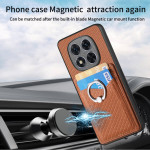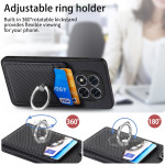 Funda multifuncional para Xiaomi Redmi Note 14 Pro 5G / Poco X7 con soporte para tarjetas, soporte giratorio de 360° y textura de fibra de carbono.