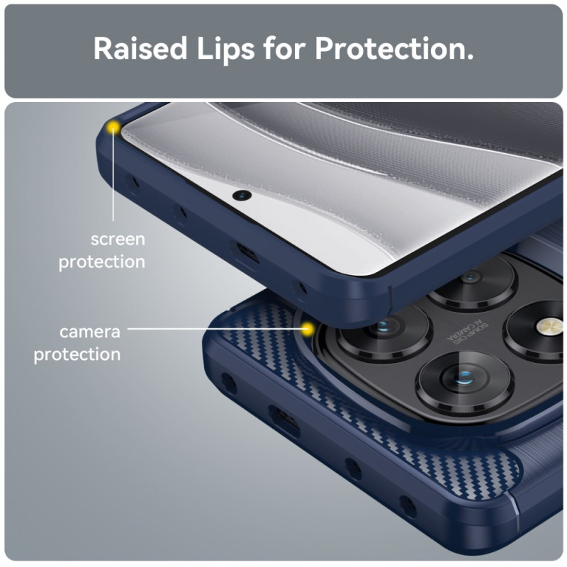 Descubre nuestra elegante y duradera funda para tu Xiaomi Redmi Note 14 Pro 5G / Poco X7. Fabricada en TPU suave con textura de fibra de carbono, ofrece una protección óptima contra golpes y arañazos.