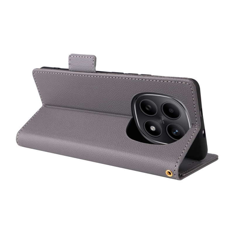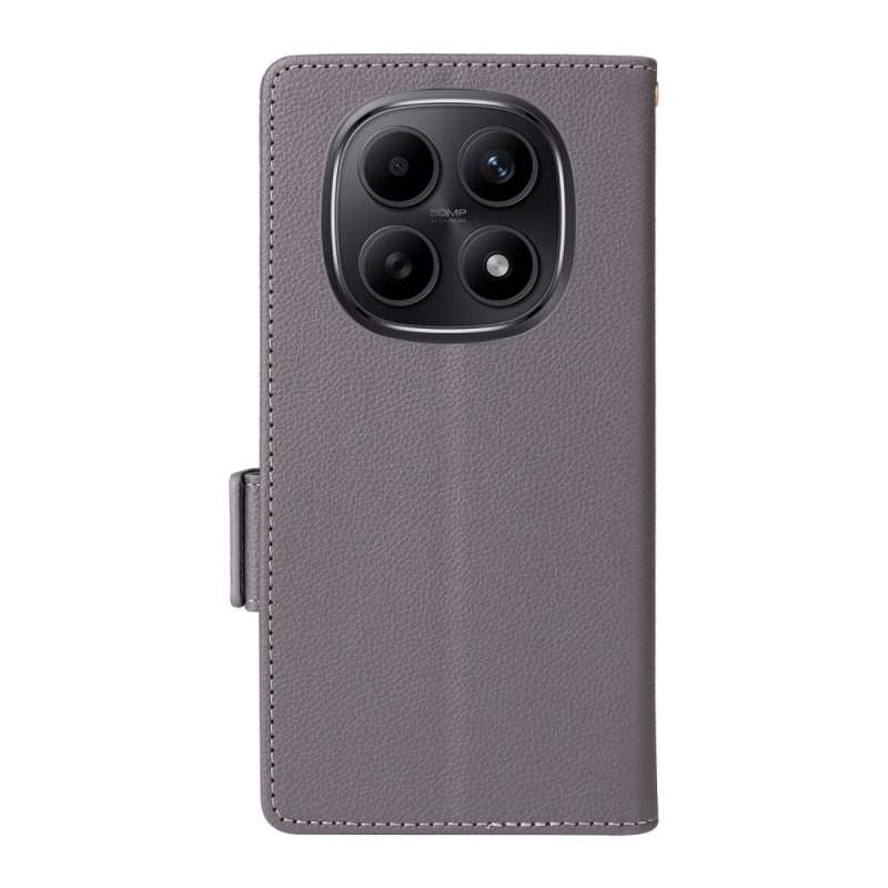 Elegante funda monedero de cuero PU texturizado para Xiaomi Redmi Note 15 5G / 4G. Multifuncional con ranuras para tarjetas, soporte de visualización integrado y práctica colgante de mano. Protección completa contra los golpes diarios con cierre magnético seguro.