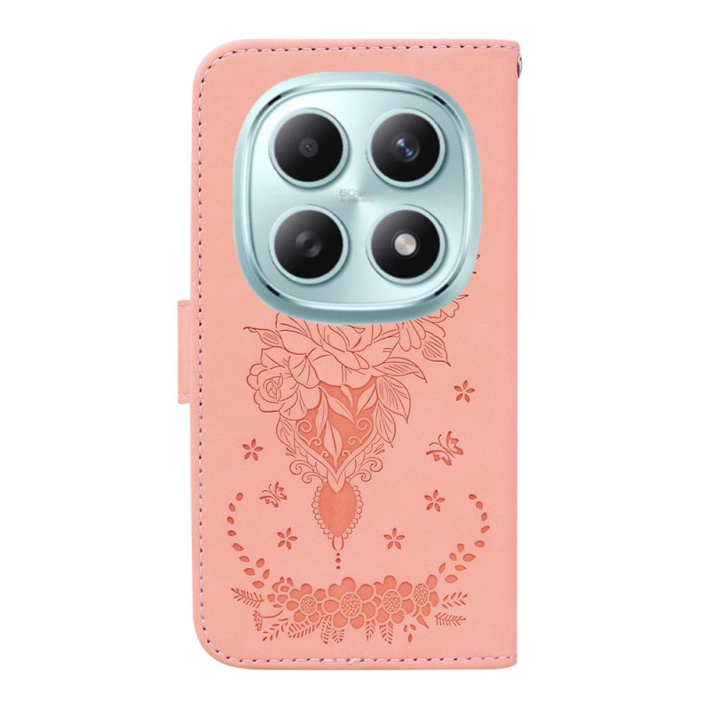 Descubre esta elegante funda cartera para el Xiaomi Redmi Note 15 5G, adornada con un bonito motivo de mariposas y flores. Con 2 ranuras para tarjetas, función de soporte y una práctica colgante de mano, combina estilo y funcionalidad.