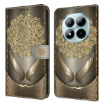 Elegante cartera con solapa y magnífico motivo de flor dorada brillante. Incluye un práctico tarjetero desplegable, 2 ranuras para tarjetas y un compartimento para billetes. Cierre magnético de seguridad para una protección óptima.