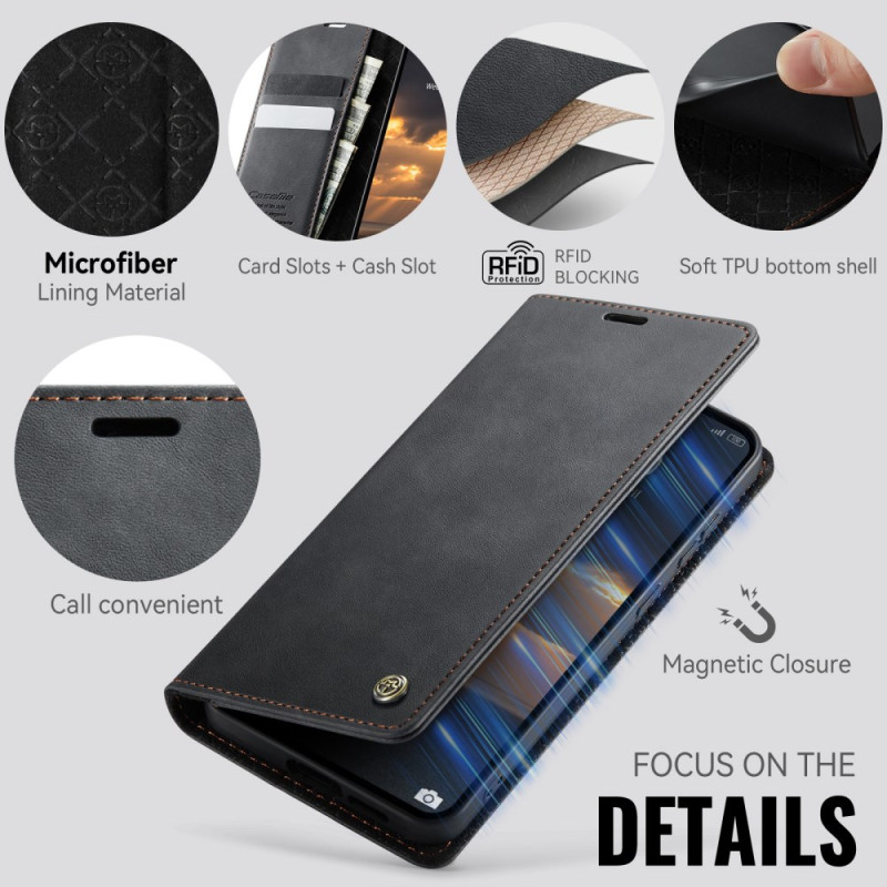 Elegante cartera con protección RFID integrada para mantener seguros sus datos personales. Diseño práctico con 2 ranuras para tarjetas y bolsillo para billetes. Función de soporte ajustable para tener las manos libres.