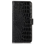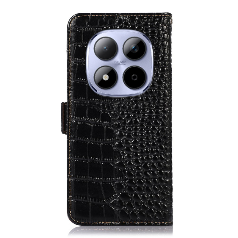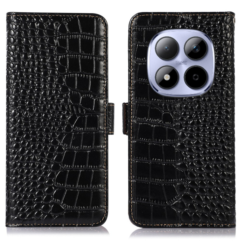 Elegante funda cartera con textura de cocodrilo para Xiaomi Redmi Note 15 Pro 4G. Protección RFID integrada, 3 ranuras para tarjetas y 1 bolsillo para billetes. Soporte de visualización ajustable y doble cierre magnético para una seguridad óptima.