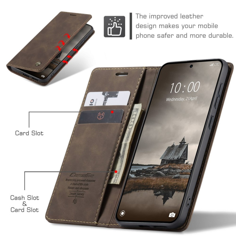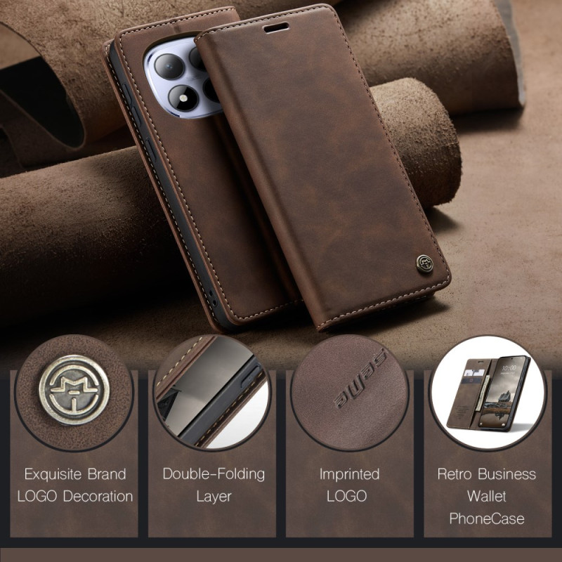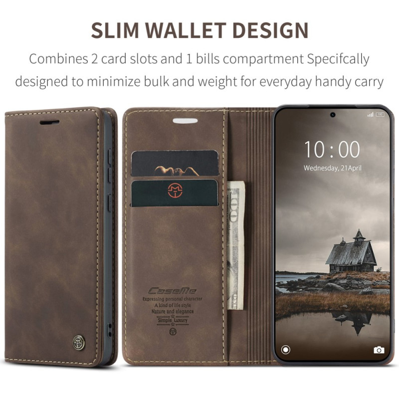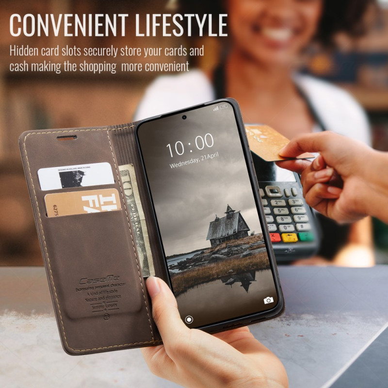 Descubre la funda cartera CASEME 013 para Xiaomi Redmi Note 15 Pro 4G. Elegante diseño retro con compartimentos para tarjetas y dinero, soporte de visualización ajustable y cierre magnético seguro. Protección completa para tu teléfono.