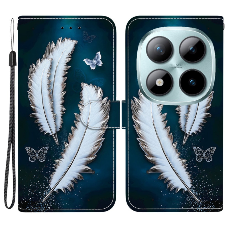 Protege tu Xiaomi Redmi Note 15 Pro 5G con estilo con esta funda cartera con solapa y motivos de mariposas y plumas blancas. Con ranuras para tarjetas, soporte integrado y cierre magnético, combina estilo y practicidad para el día a día.