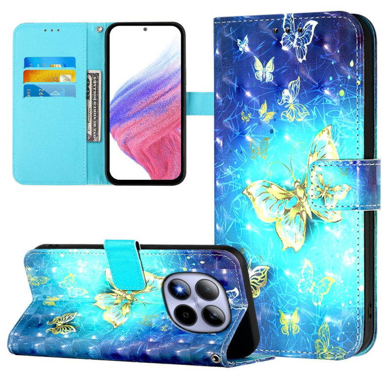 Protege tu Xiaomi Redmi Note 15 Pro 5G con estilo con esta funda cartera con motivo de mariposa dorada. Diseño multifuncional con 3 ranuras para tarjetas, 1 bolsillo para efectivo y soporte ajustable para tener las manos libres.