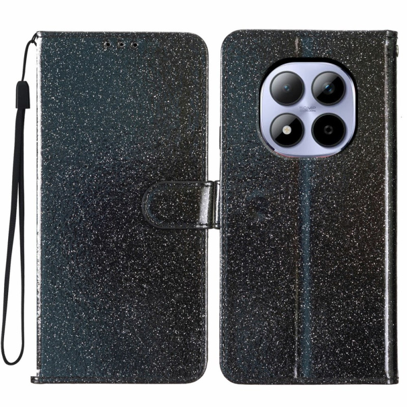 Protege tu Xiaomi Redmi Note 15 Pro 5G con estilo con esta brillante funda tipo cartera. Fabricada en piel de PU de primera calidad con TPU resistente a los impactos, cuenta con ranuras para tarjetas, un soporte manos libres ajustable y una práctica colgante para la muñeca.
