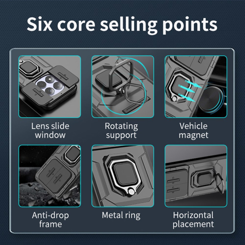 Protege tu Xiaomi Redmi Note 15 Pro 5G con esta robusta funda con tapa deslizante para el objetivo y soporte giratorio. Fabricada con materiales resistentes, ofrece una protección óptima contra golpes y arañazos, al tiempo que permite un acceso completo a todas las funciones del teléfono.