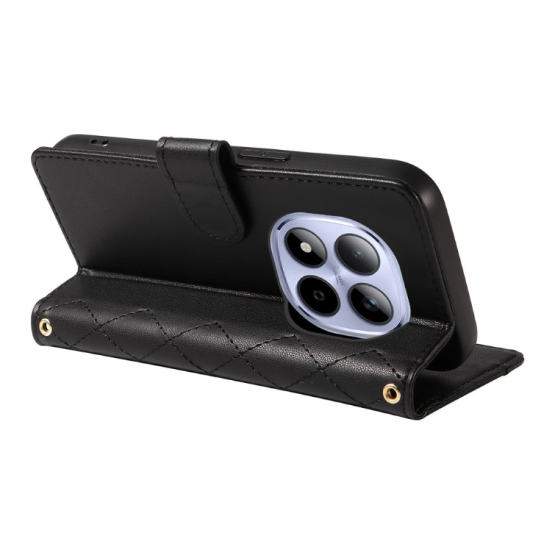 Proteja su smartphone con estilo gracias a esta funda cartera multifunción. Con 3 ranuras para tarjetas y un bolsillo para el efectivo, combina practicidad y estilo con su refinado estampado de rombos. Se entrega con colgante para la muñeca y bandolera.