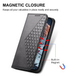 Protege con estilo tu Xiaomi Redmi Note 15 Pro 5G con esta funda tipo cartera de polipiel con textura de becerro. Diseño sofisticado con estampado de diamantes, cierre magnético seguro, soporte plegable y práctica colgante de mano para facilitar su transporte.