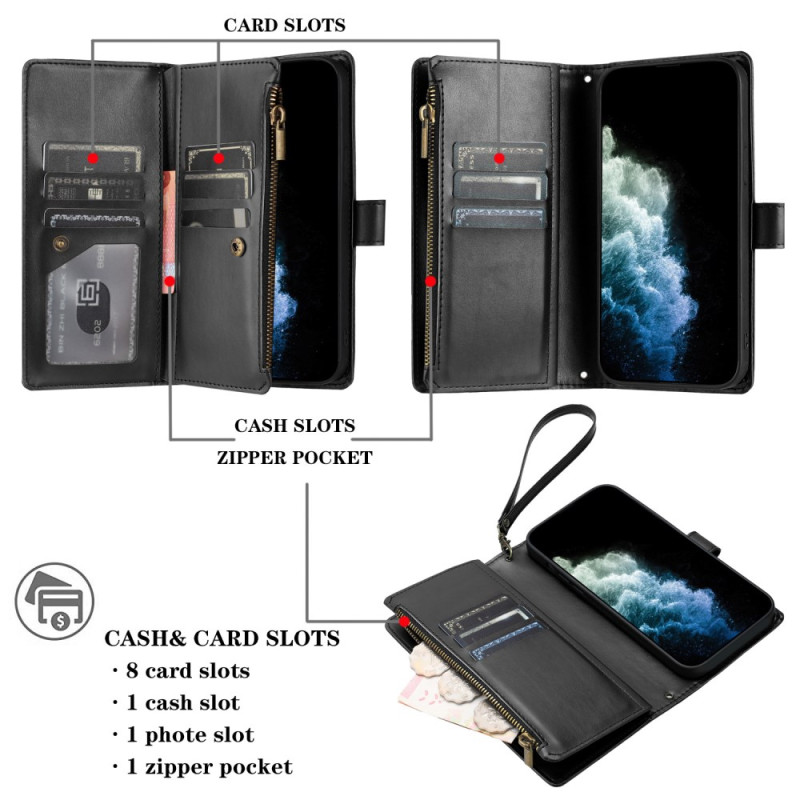 Étui multifonction en cuir PU élégant pour Xiaomi Redmi Note 15 Pro 5G. Design portefeuille avec 8 emplacements pour cartes, poche zippée, support intégré et dragonne amovible. Protection antichoc renforcée et fermeture magnétique sécurisée.