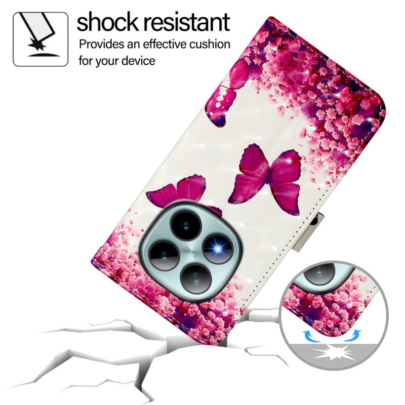 Protege tu Xiaomi Redmi Note 15 Pro Plus 5G con estilo gracias a esta funda monedero con un encantador diseño de mariposas y rosas.
