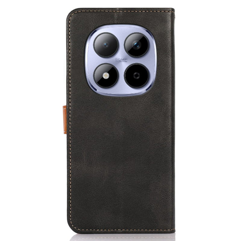 Elegante funda cartera para Xiaomi Redmi Note 15 Pro Plus 5G. Diseño sofisticado con cierre magnético dorado, 2 ranuras para tarjetas, 1 bolsillo para fotos y 1 compartimento para billetes. Soporte plegable ajustable para una visión manos libres óptima.