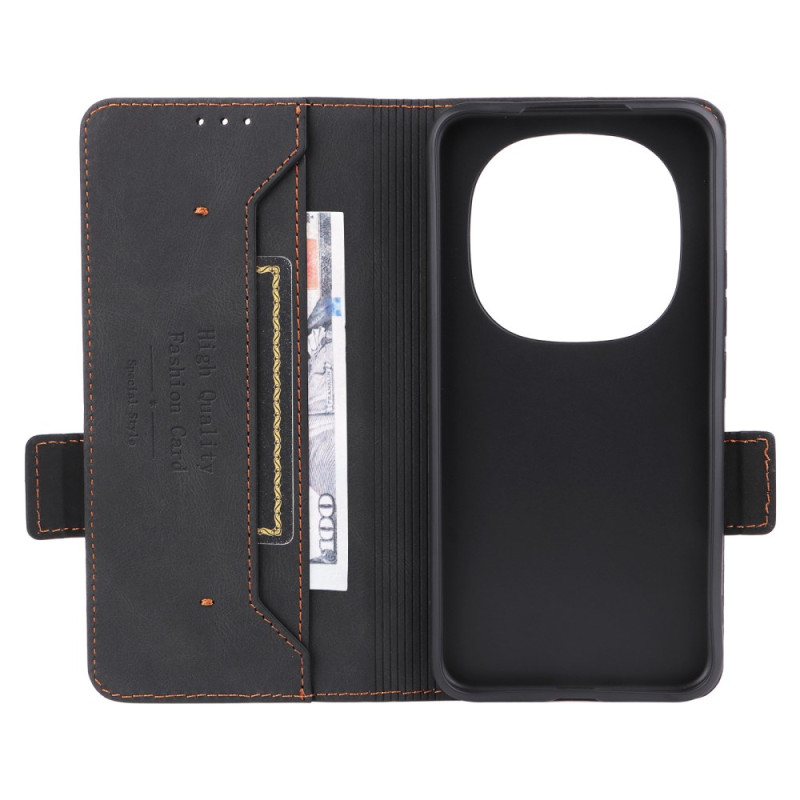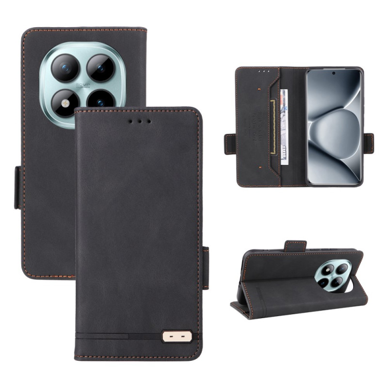 Étui portefeuille élégant avec rabat magnétique pour votre Xiaomi Redmi Note 15 Pro Plus 5G / Poco M8 Pro 5G. Doté de fentes pour cartes, d'une poche pour espèces et d'un support multifonction. La décoration métallique apporte une touche sophistiquée tandis que les bords surélevés protègent l'écran et l'objectif photo.