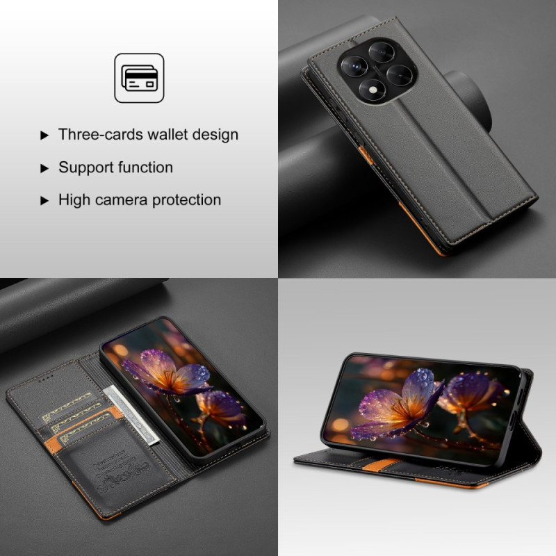 Protégez votre Xiaomi Redmi Note 15 Pro Plus 5G / Poco M8 Pro 5G avec élégance grâce à cet étui portefeuille multifonction. Doté de la technologie de blocage RFID, il dispose de 3 emplacements pour cartes et d'un compartiment pour espèces. Son support intégré permet un visionnage mains libres.