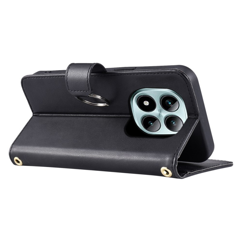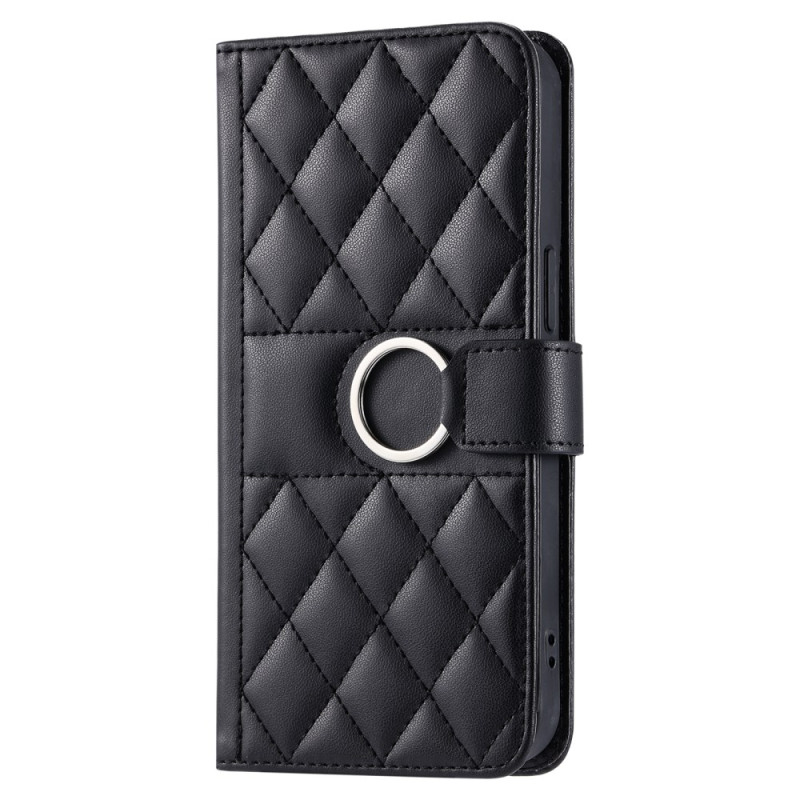 Étui multifonction élégant avec design losange sophistiqué, anneau de maintien et support intégré. Comprend 5 emplacements pour cartes, une poche à monnaie et deux bandoulières amovibles pour un port main, poignet ou crossbody...