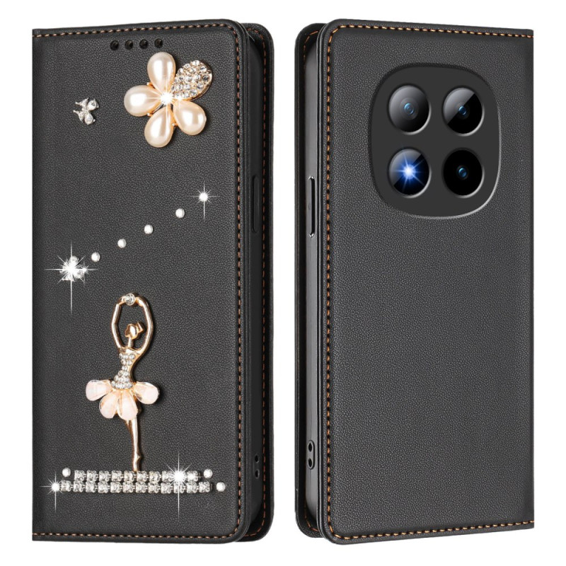 Élégant étui portefeuille à rabat avec danseuse ballet ornée de strass. Protection RFID intégrée pour sécuriser vos cartes bancaires. Fonction support ajustable pour visionnage mains libres. 2 emplacements cartes et 1 compartiment billets.