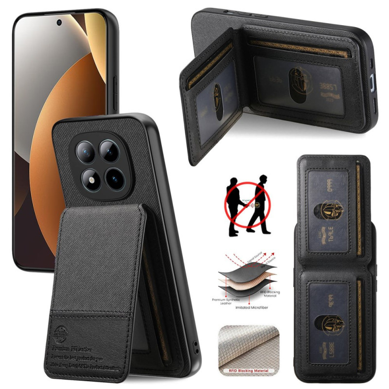 Protégez votre Xiaomi Redmi Note 15 Pro Plus 5G / Poco M8 Pro 5G avec élégance grâce à cette coque multifonction en cuir texturé et matériaux hybrides. Dotée d'un support ajustable bidirectionnel, d'un porte-cartes magnétique sécurisé et d'une protection RFID anti-piratage, elle allie style et fonctionnalité.